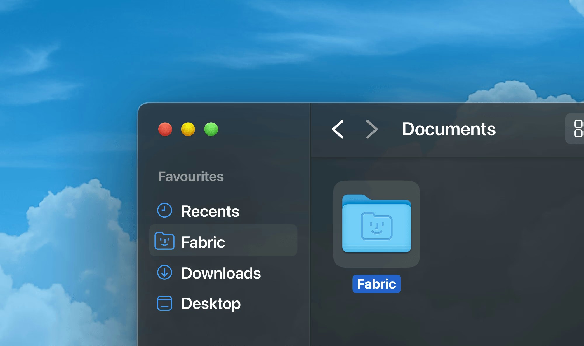 Local folder sync, you need to install it from the desktop app. This will create a folder on your computer calledFabric, located inside your User folder on the computer (the same level as Downloads, Desktop etc. usually are). Anything you add or remove from this folder (inside Fabric or on your computer) will be reflected in Fabric and on your computer.